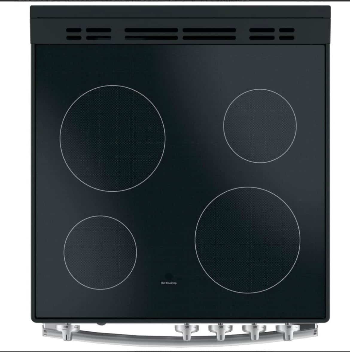 Edge-to-edge seamless surface; 4 radiant elements; hot surface indicator light; element-on indicator light |