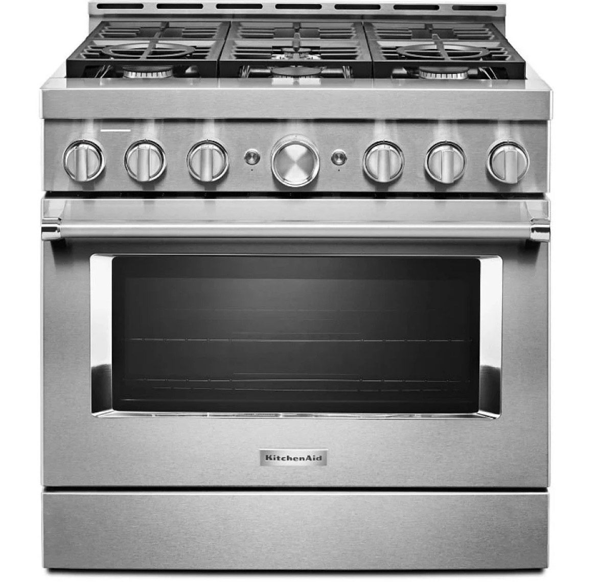 KitchenAid Gas Range 36″ width Self Clean, Convection, 6 burners KFGC506JSS