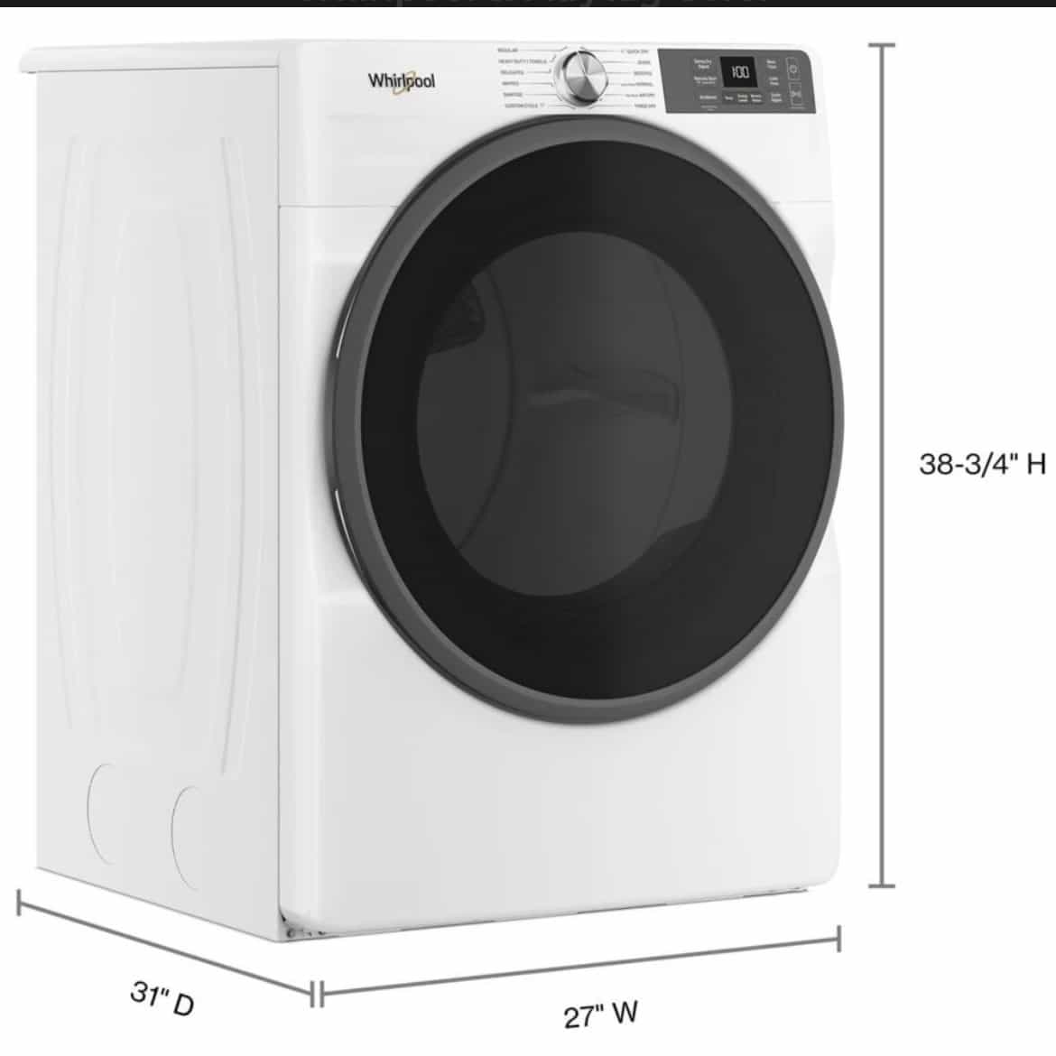 Whirlpool Electric Dryer 7.4 cu ft White YWED5720RW 40% OFF