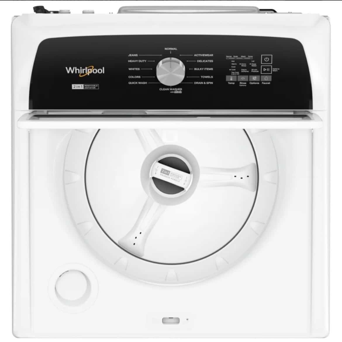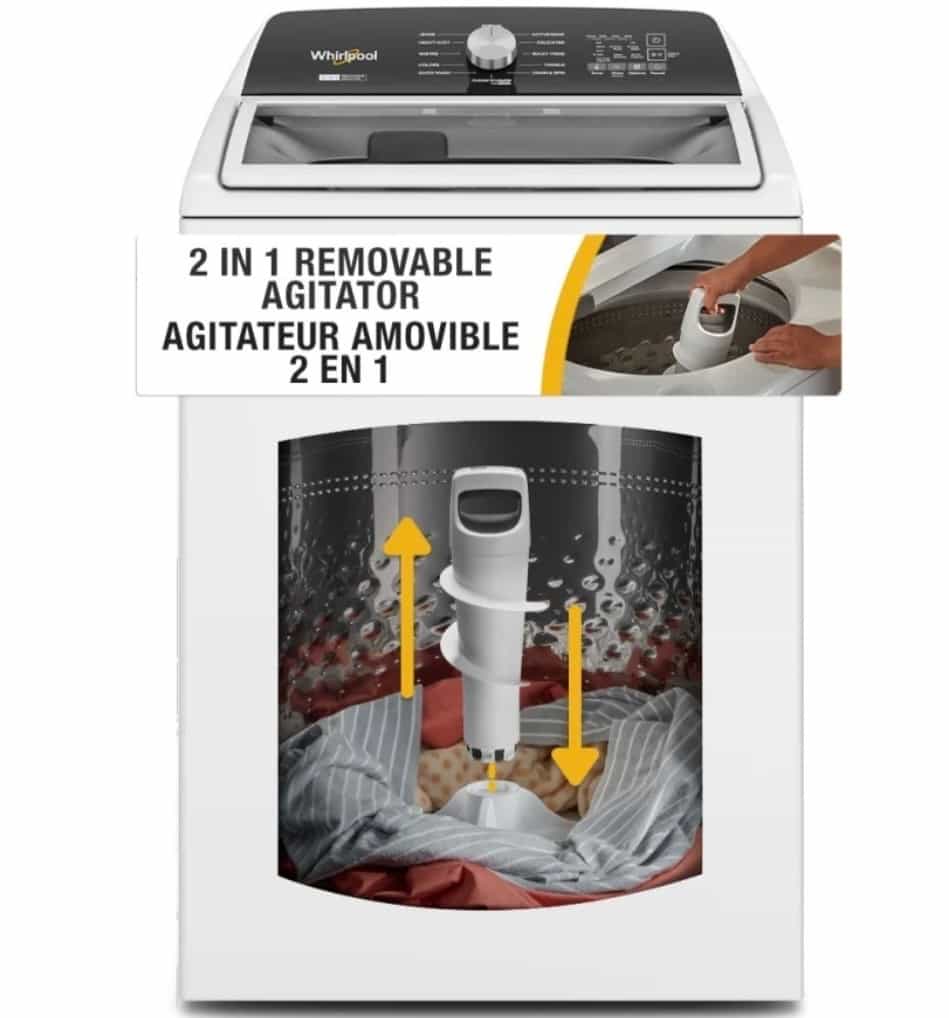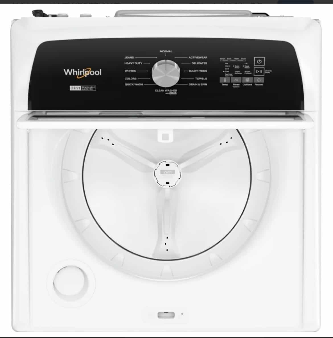 Whirlpool Top Load Washer 27″ Width 5.5 cu ft 2-in-1 Removable Agitator WTW5057LW
